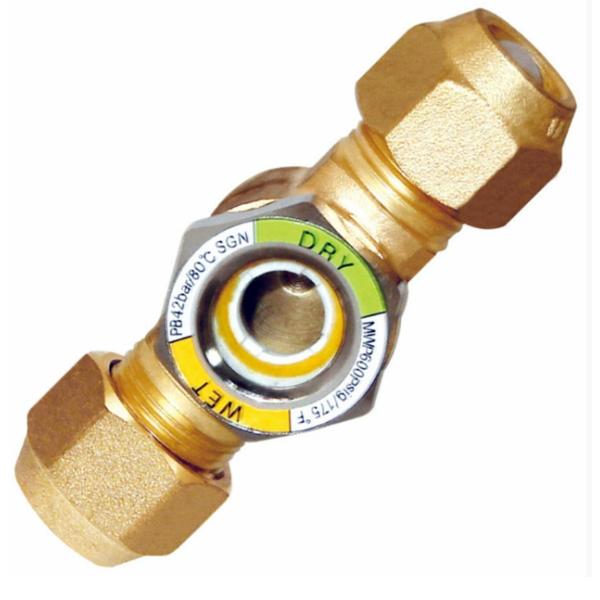 Copper Sight Glass Indicator with High-Transparency Glass Window and Color-Changing Moisture Indicator for Refrigeration Systems Images |
